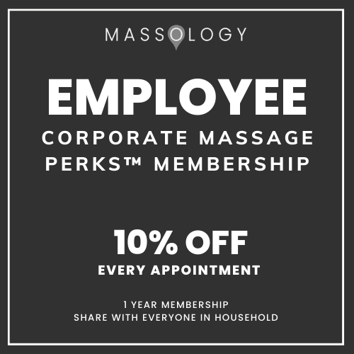 Massology Employee Corporate Massage Perks™ is exclusively available to employees of companies participating in the Massology Corporate Massage Wellness Rewards™ Program.